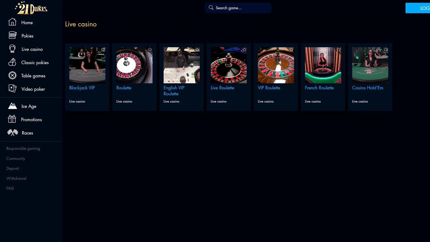 For gamblers who prefer a more immersive experience, 21Dukes offers Live Casino. Navigate to it using the casino catalog (click on the dedicated tab on the left). This category contains about a dozen of games that stand out with the following peculiarities: