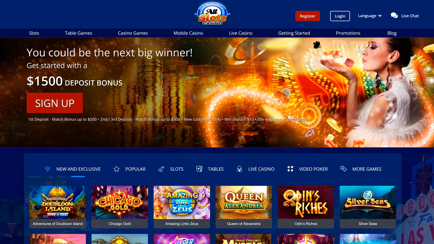 All Slots Casino is a real money casino that provides its customers with an extensive selection of real money pokies and casino games. It also attracts many users by offering promo deals and the VIP program. Due to the fact that it was created over 20 years ago, the site is already active in different regions, including Australia.