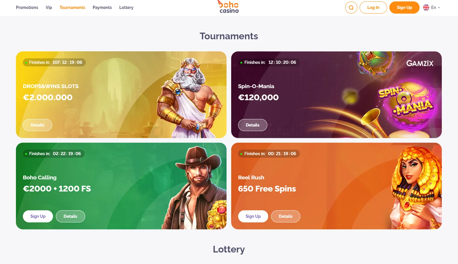 - Numerous constant Boho Casino bonus codes and temporary tournaments;