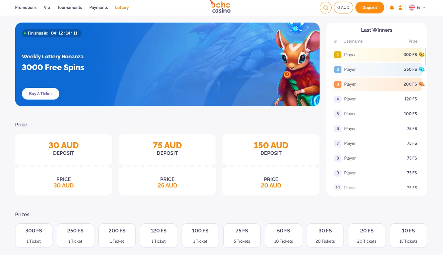 - Doesn’t offer a Boho Casino no deposit bonus;