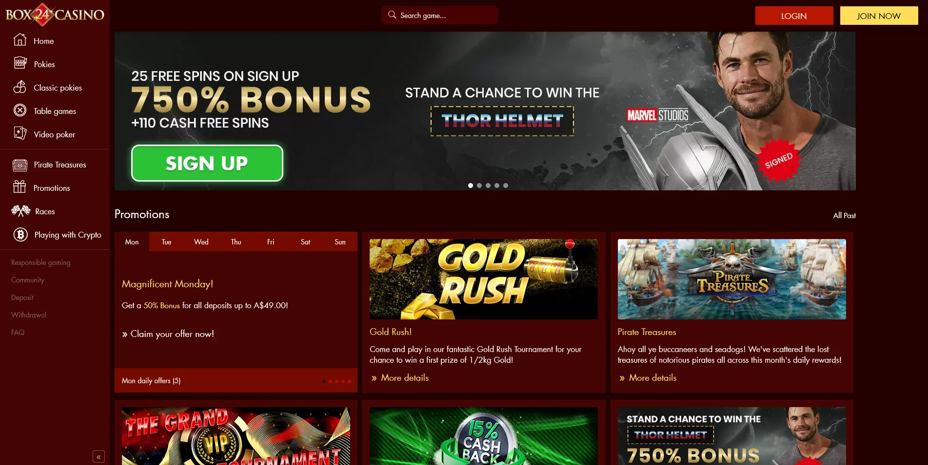 Please note that you will only be allowed to open an account at Box 24 if you are at the age of at least 18 years, or older. In addition, certain territorial restrictions apply. Please make sure you live in an allowed jurisdiction. Australian players can join legally and rightfully.