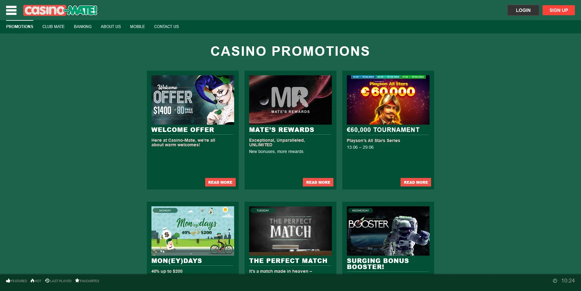 Casino-Mate, unfortunately, lacks a lot of the huge bonuses and promotions other sites feature. The three offers it does have are on the modest side, but still great options that players should take advantage of if possible!