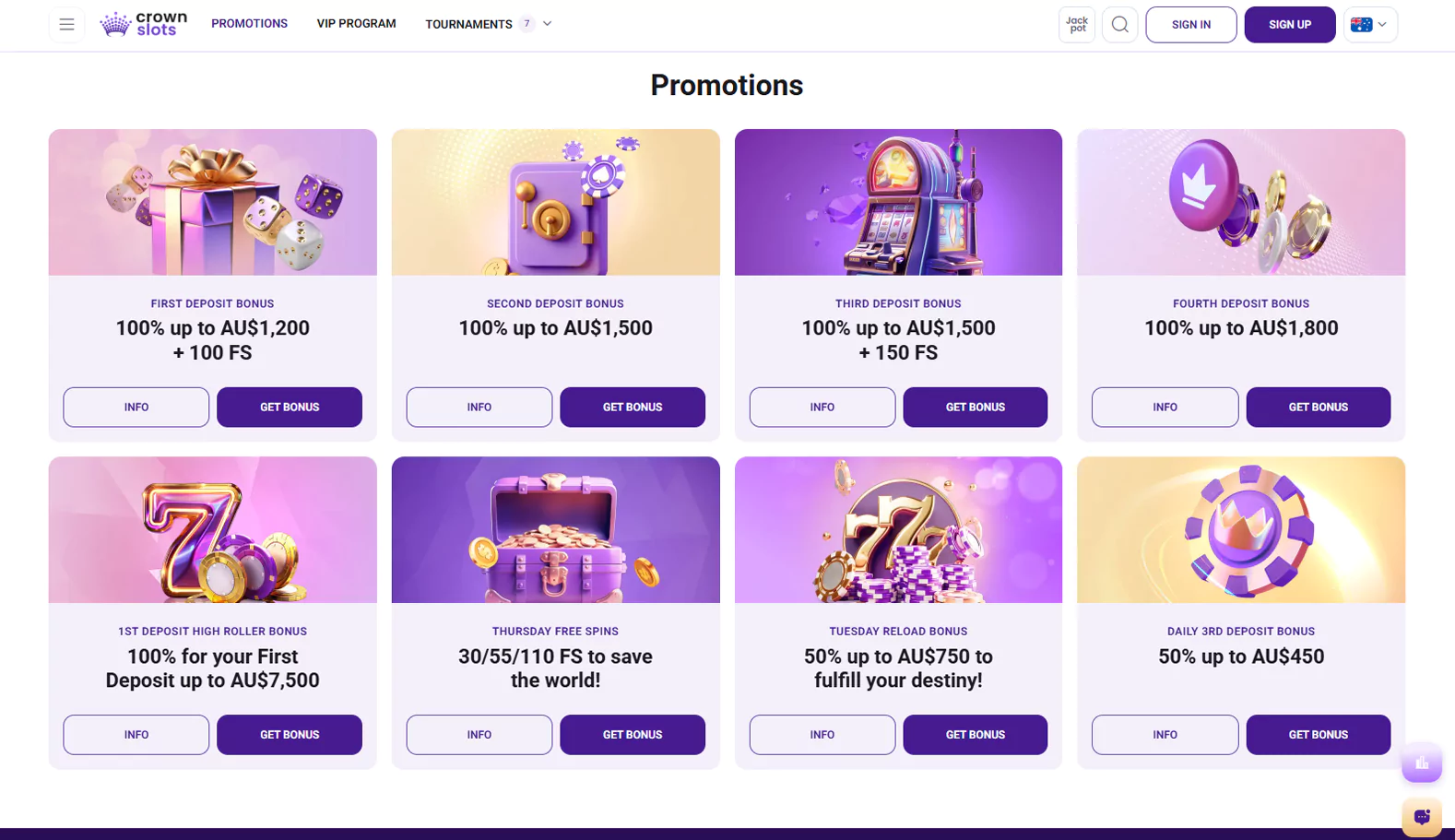 - The bonus for the first deposit at Crowslots is A$4,500 + 350 free spins;