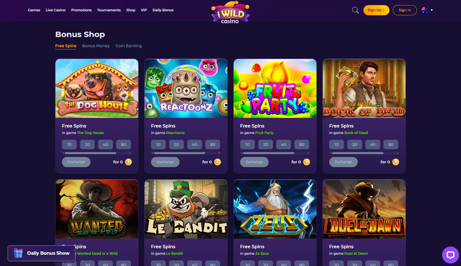 There are no bonuses of any kind that you can get without making a deposit at the moment. However, iWild often hands out such gifts as part of the VIP program.