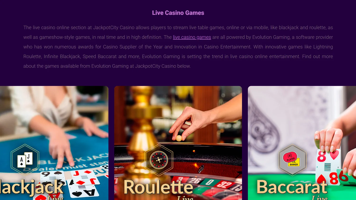 Screenshot gallery of Jackpot City Casino