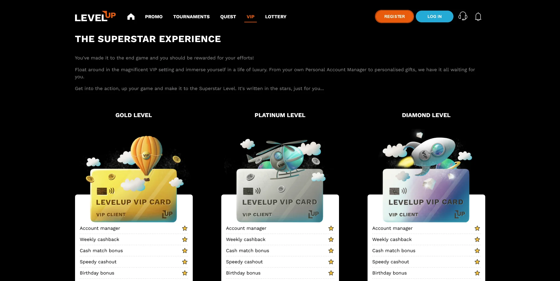 Naturally, you can access basically the entire gaming content as well as the best LevelUp Casino AUS bonuses with just one click. On the right side of the top menu bar, you can find important buttons once again: