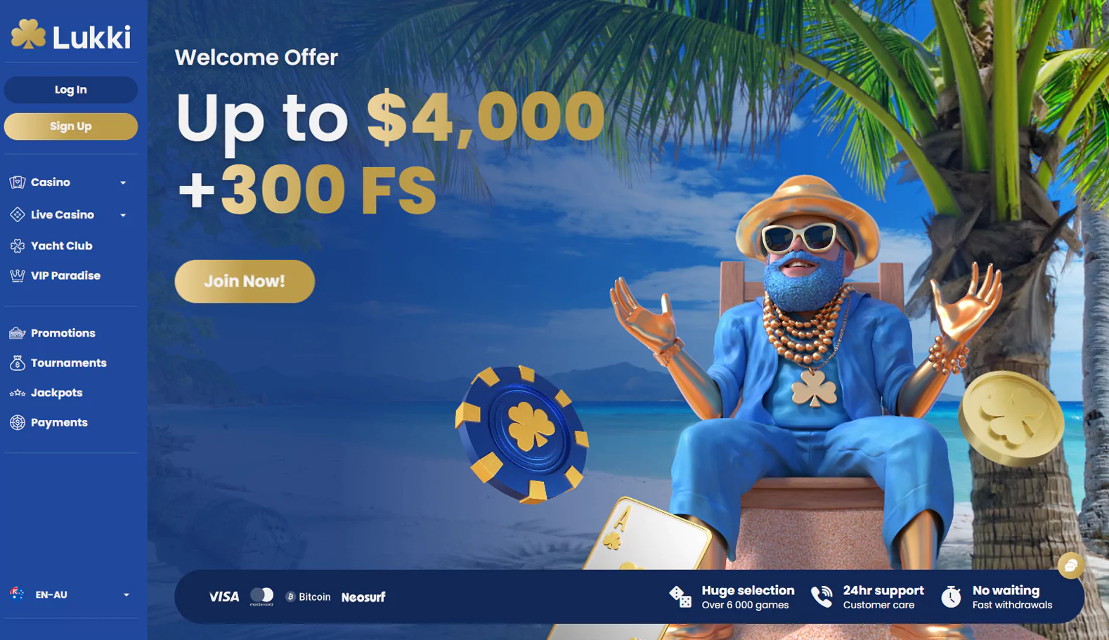 Lukki is a modern casino for Australians. Here you will find a gorgeous collection of games, and daily bonuses, as well as a great design and user-friendly interface. We have thoroughly checked every aspect of the website and rated it. Spoiler: the site is worth your attention, so join today, take a welcome gift of up to A$4,000 and 400 free spins, and start playing the best pokie machines.