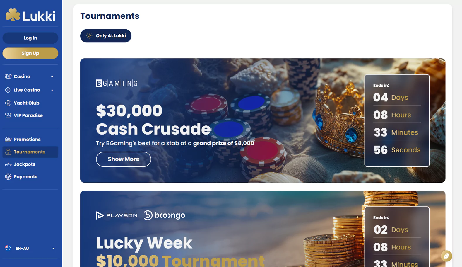 | Regular Tournaments | In addition to all the promotions and gifts, Lukki also regularly hosts great tournaments with nice prize pools. To participate, you usually just need to play certain games, sometimes from certain providers |