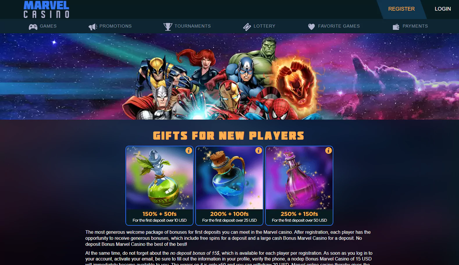 In this article, you’ll find out why this website deserves your attention, what games and promos it offers, and what Marvel Casino no deposit bonus you’ll get, all from first-hand experience.