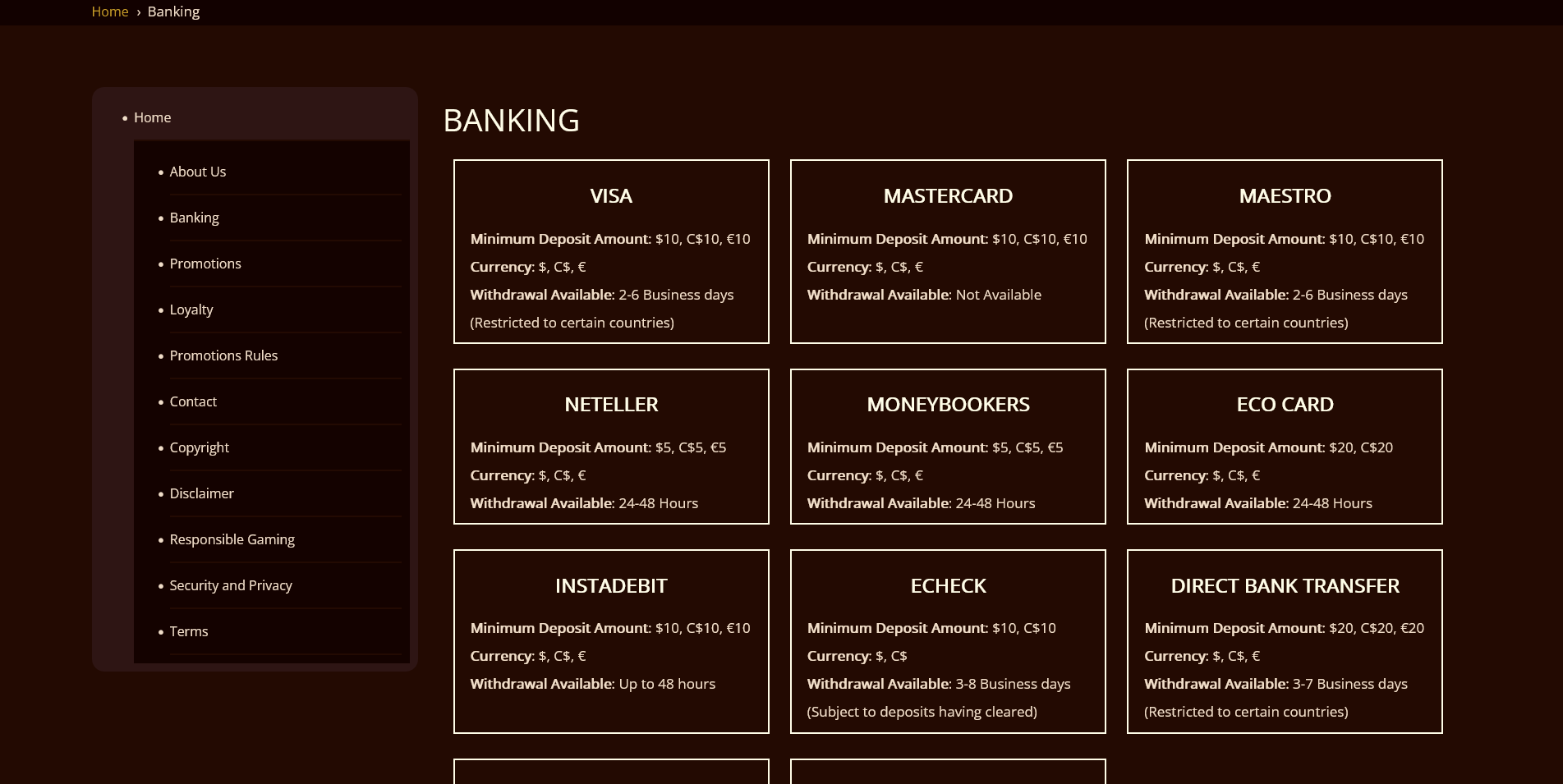 The site has added the same payment systems for withdrawals, but with higher thresholds.