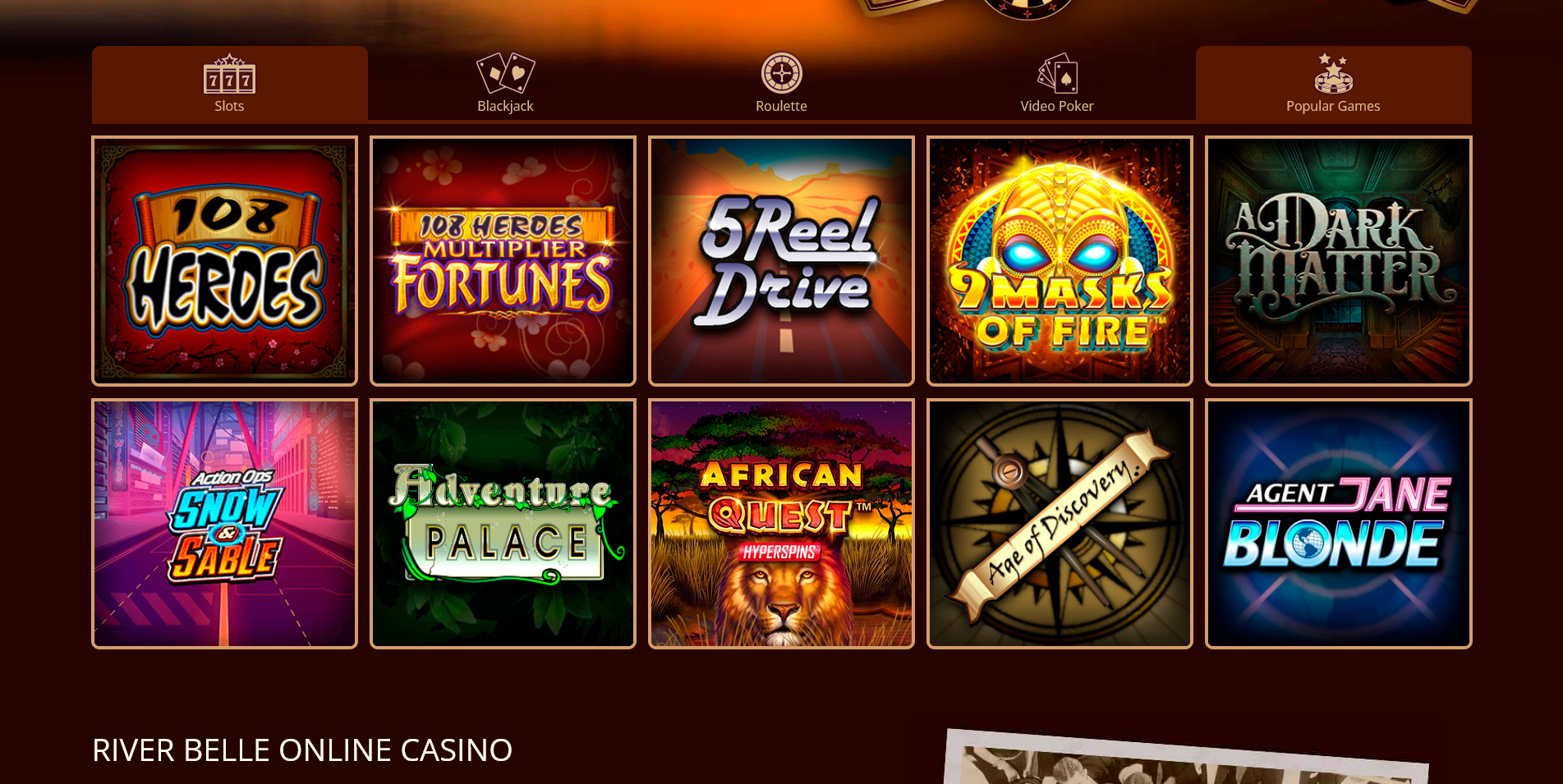River Belle has hundreds of Microgaming pokies and numerous editions of blackjack, roulette, bingo, etc. You will also find a lot of interesting things in the Live section.