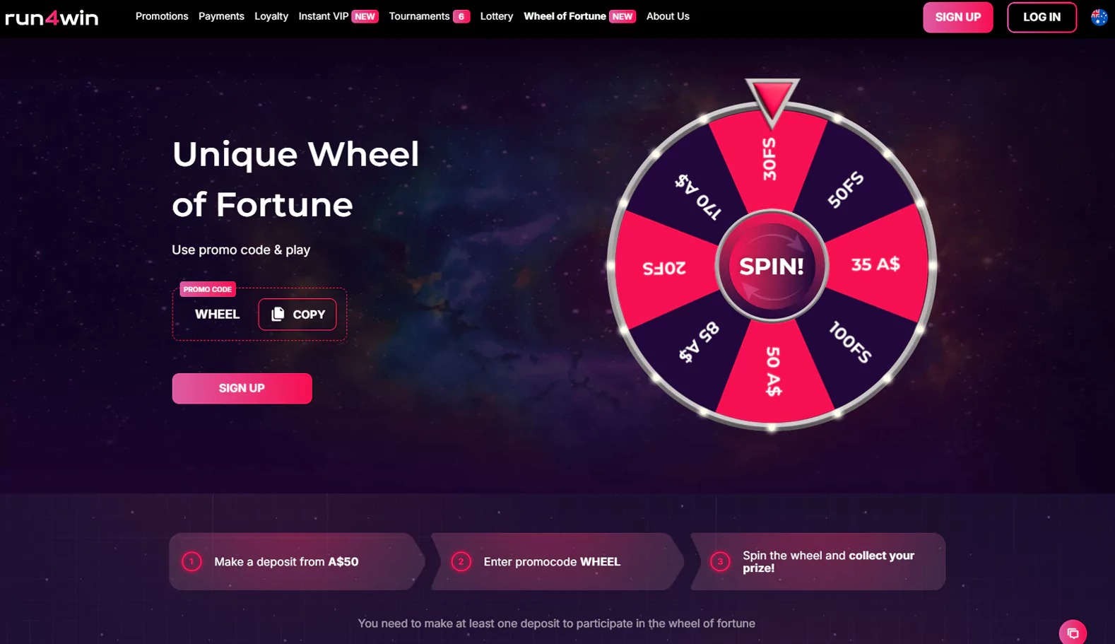 Min. withdrawal: 30 AUD