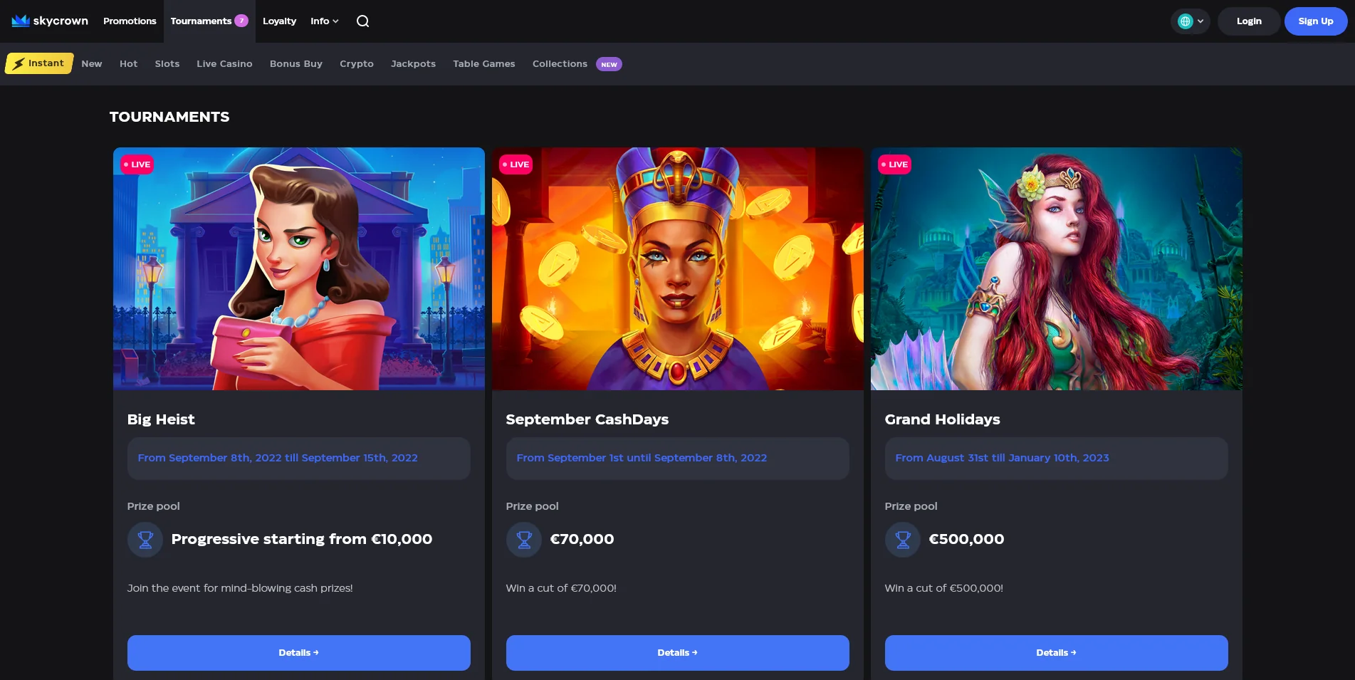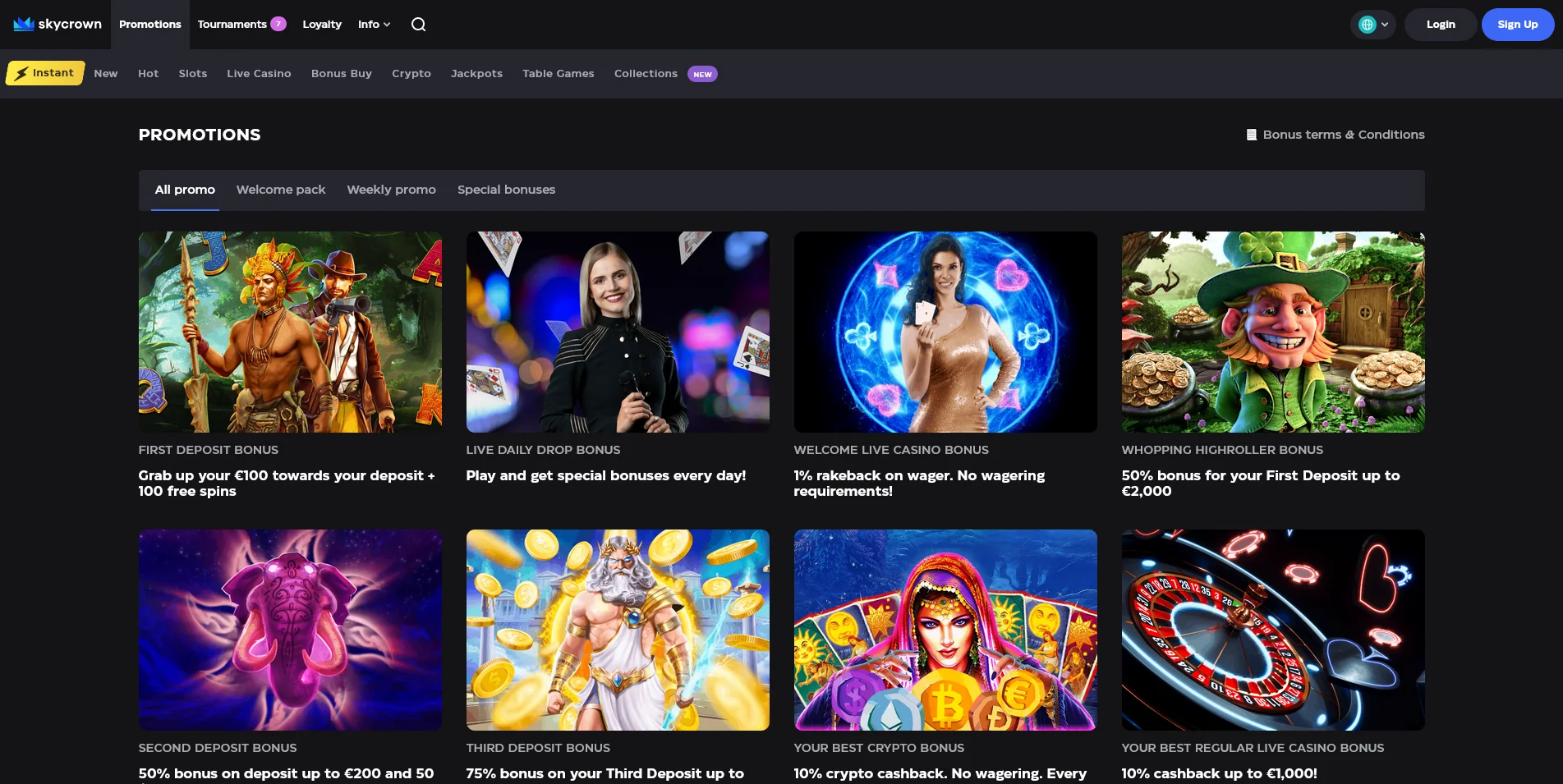 There are more than 3,000 games present in the lobby of Skycrown Casino. These are divided into several categories: new, hot, live casino, instant, pokies, bonus buy, crypto, jackpots, and table games.