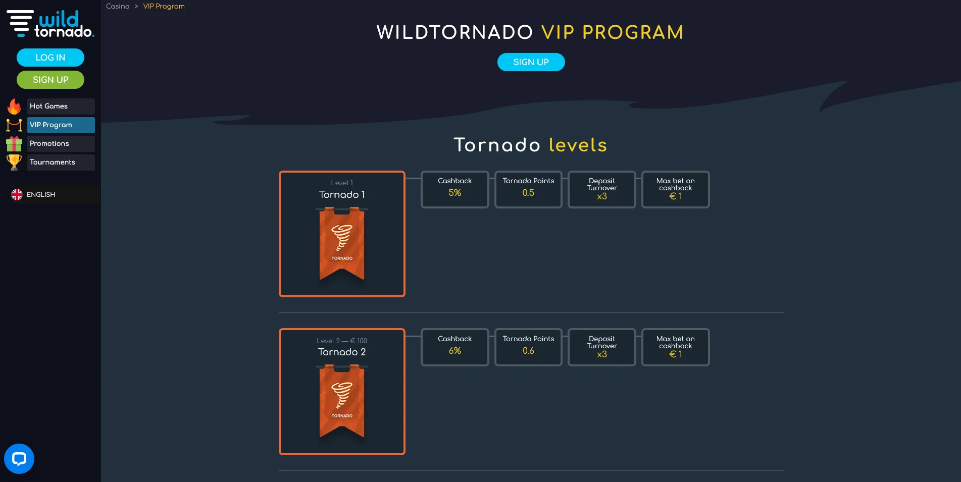 The list of Wild Tornado Casino bonuses includes numerous prizes for both newcomers and loyal players.